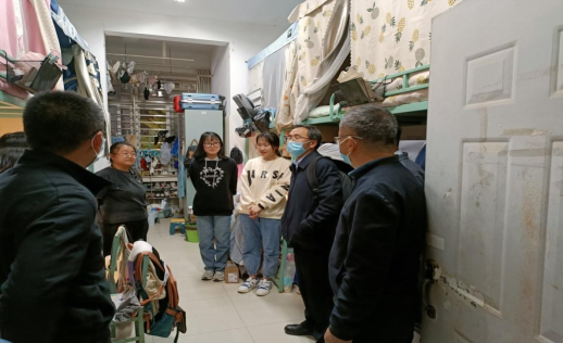 4月11日晚,校党委常委、副校长潘学军深入憬园3栋,走访了制药202班学生宿舍并与学生进行交流,学院党委书记徐天瑞、党委副书记樊亚宇、辅导员李绍平及班主任太志刚老师陪同。