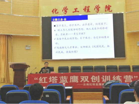 2022年4月14日14:30,化学工程院在化工100报告厅开展了化工院2022年红塔蓝鹰双创训练营第一期主题培训。此次培训由梅毅教授担任主讲嘉宾,讲解了《科学精神与实践》,2022年红塔蓝鹰双创训练营全体营员参与了此次活动。